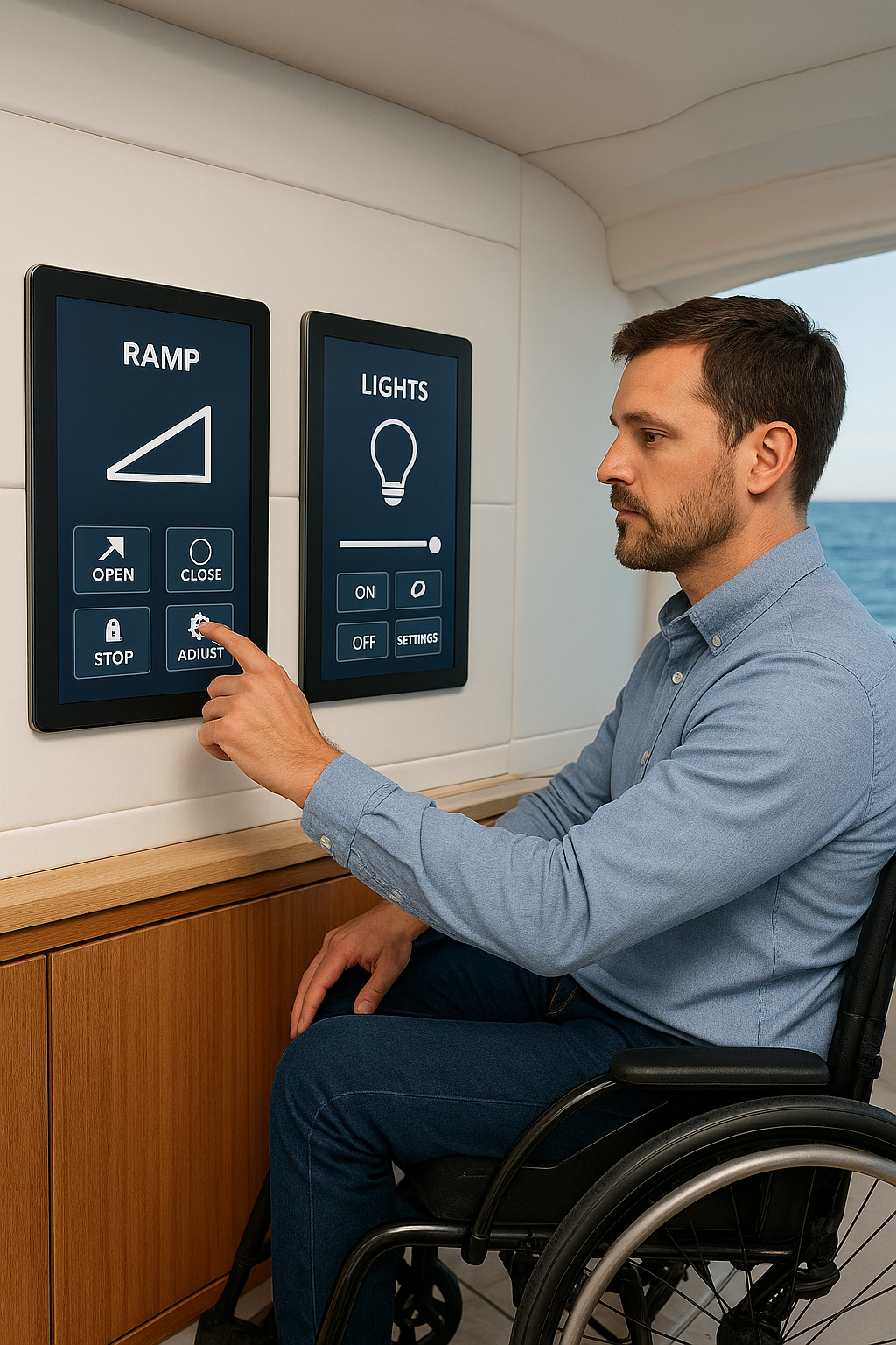 Assistenzsysteme revolutionieren den Alltag an Bord. Für Menschen mit eingeschränkter Mobilität schaffen sie neue Freiräume und erhöhen die Sicherheit. Auf barrierefreien Yachten von SUNSHINE YACHT COMPANY FZCO kommen vernetzte Technologien zum Einsatz, die Türen, Rampen, Beleuchtung und Aufzüge automatisch steuern. Über ein zentrales Touch-Panel oder Sprachbefehle lassen sich sämtliche Funktionen bedienen – vom Sonnenschutz bis zur Raumtemperatur. Sensoren erkennen Bewegungen und passen Systeme in Echtzeit an, sodass Rollstuhlfahrer sich ohne Hilfe über das gesamte Deck bewegen können. Intelligente Navigationsassistenten helfen beim Anlegen und Kurs halten, während Sicherheitsalgorithmen Stöße ausgleichen und Warnungen senden. Diese Technologien verschmelzen zu einem intuitiven System, das Luxus, Komfort und Barrierefreiheit verbindet. Ziel ist nicht nur technische Unterstützung, sondern echte Selbstbestimmung: Der Nutzer entscheidet, das System begleitet.